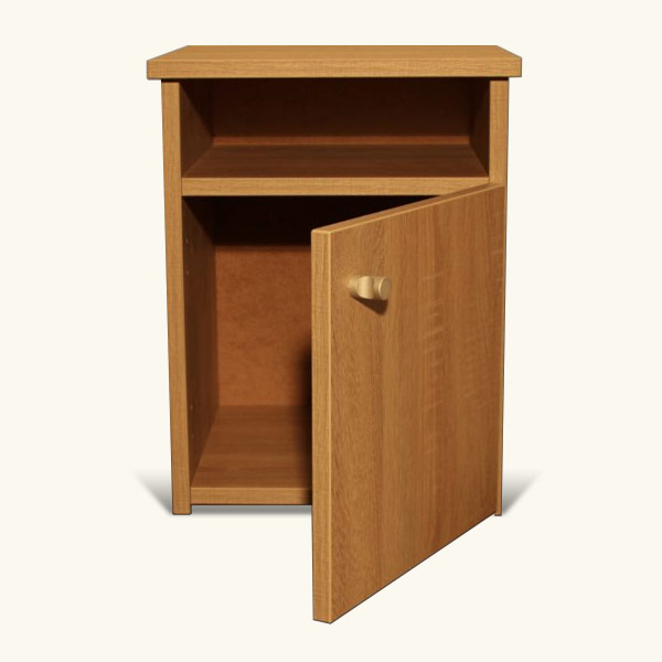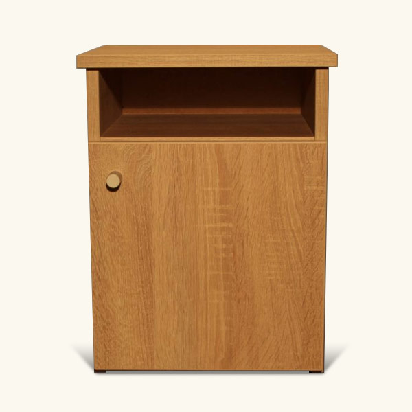 TOLDI ágykeretekhez 18mm vastag világos Sanoma tölgy színű bútorlapból készül éjjeli szekrényünk. Kialakítása: 1 ajtó és 1 nyitott polc.